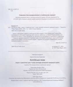 Зошит з граматики інтегровано в НМК “English. Kids Online” для 7-го класу НУШ. Зошит забезпечує системний підхід у вивченні граматичних явищ у 7-му класі.