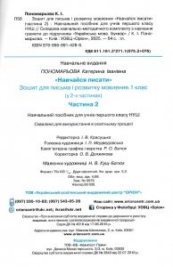Зошит для письма та розвитку мовлення для 1 класу НУШ (частина 2) "Навчайся писати".