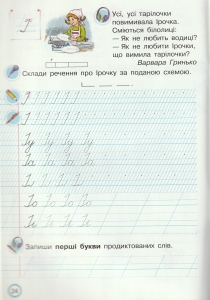Картки призначені для формування в першокласників навички письма у букварний період. Перед письмом у зошиті учні розглядають на картці букву, її елементи та їх поєднання у збільшеному вигляді і тренуються їх писати (спочатку великих розмірів, а потім трохи менших).