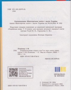 Підручник "Українська мова" для 7-го класу НУШ. Автор: Літвінова І.Видавництво: Ранок.Програма: НУШ.Рік видання: 2024.Кількість сторінок: 256.Бумага: Офсет.Формат: 70х100/16.Обкладинка: Тверда.