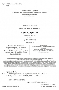 Робочий зошит за предметом "Я досліджую світ" для 3 класу НУШ (частина 2). До підручника Гільберг Т. Автор: Єресько Т. Видавництво: Сиция. Програма: НУШ. Рік видання: 2025. Кількість сторінок: 64. Бумага: Офсет. Формат: 70х100/16. Обкладинка: м'яка.
