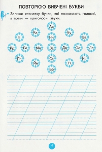 Зошит включає заключну частину букварного періоду. У ньому подано 13 букв і сторінки для розвитку мовлення.